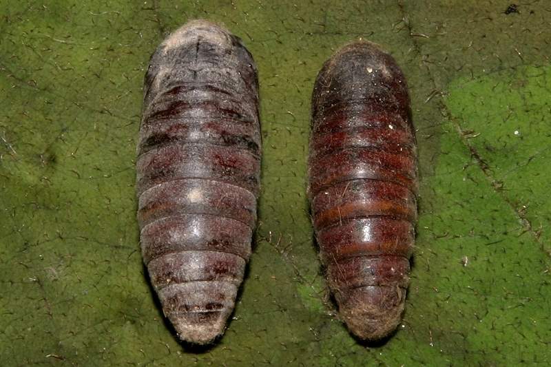 1-4: (1: Kokon), (2-4: Puppen), Fundort unbekannt (Fotos am 27. Juli 2004: Thomas Ziebarth), det. Thomas Ziebarth
