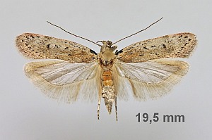 - Stainton, H. T. (1865): The natural history of the Tineina 9: [I-VII], 1-276, Gelechia pl. I-VIII. London (John van Voorst) – Paris (Deyrolle) – Berlin (E. S. Mittler und Sohn). — Digitalisat auf archive.org: [34-43], [pl. I fig. 3].