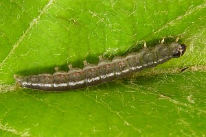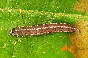 12-13: Deutschland, Sachsen-Anhalt, Landkreis Mansfeld-Südharz, Kelbra, Straßenrand, Raupe an verwildertem Apfelbaum (Malus spec.) 16. Mai 2014, e.l. 8. Juni 2014 (leg., cult., det. & Fotos: Heidrun Melzer) [Forum 5-13]