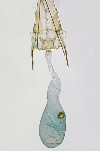 4: nicht eingebettet, ventrale und laterale Ansicht der Ostium-Region: Österreich, Niederösterreich, Perchtoldsdorf, 14. Juli 2021 (leg.: Wolfgang Stark, Genitalpräparation, det. & Mikrofoto: Peter Buchner)
