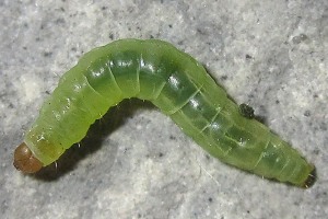 1-3: 4.7 mm: Deutschland, Niedersachsen, Region Hannover, Sehnde, ca. 60 m, Garten, Raupe Mitte April 2018 mit Schlehenblättern (Prunus spinosa) eingetragen, Zuchtfotos 30. April 2018 (cult., det. & fot.: Tina Schulz)Forum