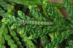 6-9: Deutschland, Brandenburg, Jänschwalde, 64 m, Raupen an Thuja, leg. 29.April 2016, e.l. 10., 17. und 21. Juni 2016 (leg., cult., det. & fot.: Friedmar Graf)Forum