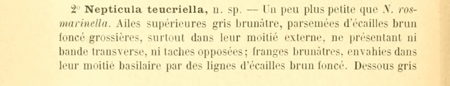 - Nepticula teucriella Chrétien, 1914 [Originalkombination]