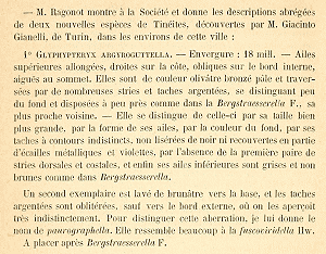 - Erstbeschreibung: Ragonot, É.-L. [Près.] (1885): Séance du 11 mars 1885. — Bulletin des séances et bulletin bibliographique de la Société entomologique de France 1885: XLIX-LX.