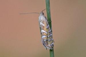 Schuetze (1931) meldet: "Disqué fand die Raupe in den Stängeln von Luzula nemorum nahe der Wurzel bis zum Frühjahr. Nach Hofmann lebt sie auch in den Samen." Mit der genannten Pflanze war wahrscheinlich Luzula nemorosa, die Weiße Hainsimse gemeint, die heute Luzula luzuloides heißt. Alle weiteren Literaturangaben scheinen sich auf diese Meldung zu beziehen. Der Kenntnisstand bezüglich der Raupennahrung lässt damit noch sehr zu wünschen übrig.