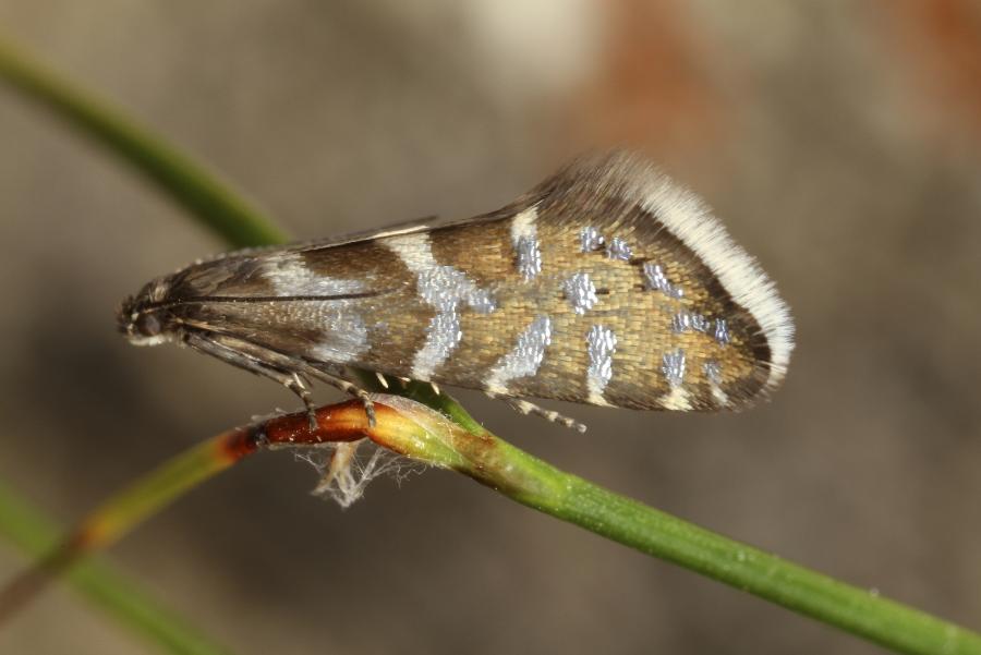 Die Art besitzt eine ähnliche Flügelzeichnung wie Glyphipterix bergstraesserella. Die silbrigen Querbänder sind allerdings in Flügelmitte nicht unterbrochen [Rudolf Bryner].