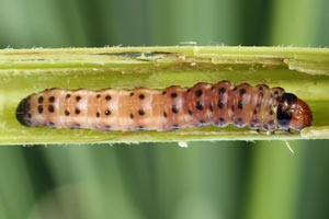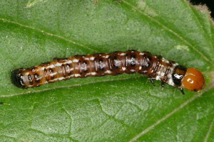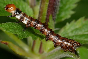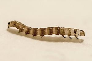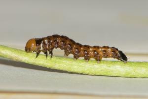 10: Länge 15 mm, Deutschland, Baden-Württemberg, oberer Neckar, Gemarkung Talhausen nördlich Rottweil, ca. 520 m, Begleitflora am Neckartal-Radweg, leg. 10. Mai 2018 aus Stängelinneren von Scharfem Hahnenfuß (Ranunculus acris), Raupenbild vom 28. Mai 2018 (leg., cult. & Studiofoto: Peter Lacha), det. Daniel BartschForum