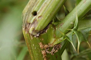 1-4: Deutschland, Nordrhein-Westfalen, Siegen-Geisweid, Heckenberg, Haubergswald am Wegrand, im abgebrochenen Stengel von Hain-Greiskraut, Senecio ovatus, 9. August 2008 (Fotos: Uwe Diener), det. Uwe Diener, conf. Stefan RateringForum