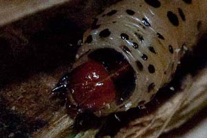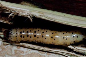 5-6: Jungraupe, Deutschland, Schleswig-Holstein, Alt Duvenstedt, Deponie, in Stängel von Ackerkratzdistel, 28. Juni 2009 (Fotos: Clas Lehmann), det. Thomas Fähnrich & Andreas Kahrer, Zuchtergebnis liegt nicht vorForum