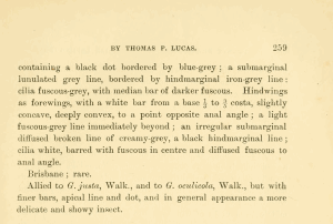 - Original description: Lucas, T. P. (1892): On twenty new species of Australian Lepidoptera. — The Proceedings of the Linnean Society of New South Wales. Second series 7 (2): 249-266.