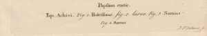 - Erstbeschreibung: Esper, E. J. C. ([1784]-1801): Die ausländische oder die ausserhalb Europa zur Zeit in den übrigen Welttheilen vorgefundene Schmetterlinge in Abbildungen nach der Natur mit Beschreibungen. Erster Theil. Mit 63 illuminierten Kupfertafeln. 1-254, pl. I-XL, XL A, XL B, XL C, XL D, XLI-LIX. Erlangen (Walthersche Kunst- und Buchhandlung).