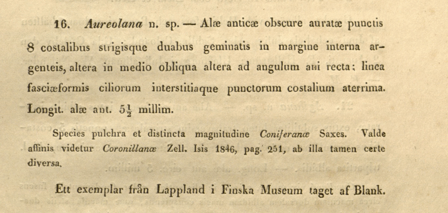 - Erstbeschreibung: Tengström, J. M. J. (1848): Bidrag till Finlands fjäril-fauna. — Notiser ur Sällskapets pro fauna & flora fennica förhandlingar 1: 69-164. Helsingfors (A. W. Gröndahl).