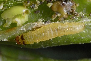 5-7: ♂, Deutschland, Thüringen, Umgebung von Jena, Raupenfund in Schoten von Tragant (Astragalus glycyphyllos) am 7. Juli 2011, e.l. 5. August 2011 (leg., cult., det. & Fotos: Heidrun Melzer), conf. Christian Kaiser