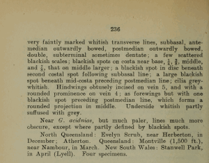 - Original description: Turner, A. J. (1922): Australian Lepidoptera of the Group Geometrites. — Transactions and Proceedings of the Royal Society of South Australia 46: 225-294. Adelaide (Gillingham, Swann & Co., Ltd.).