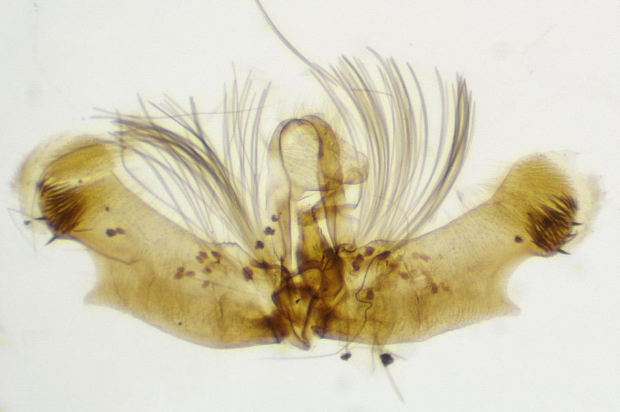 1, Knospe von Schwarzpappel (Populus nigra) mit der typischen Befallsspur, einer versponnenen Kotröhre, und 2, Blick auf den Ausgang der Kotröhre, durch die die Raupe die Knospe verlassen kann: Österreich, Niederösterreich, Schwarzau am Steinfeld, am Ufer bzw. Auwald-Rand des Schwarza-Flusses 1. April 2008 (Fotos am 1. und 5. April 2008: Peter Buchner), leg., cult. & det. Peter Buchner