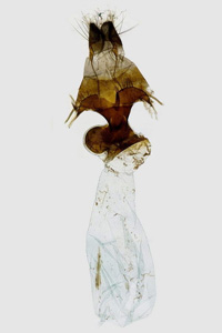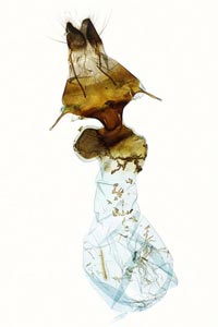 6: ♀, Deutschland, Sachsen, Altenberg im Erzgebirge, 800 m, ehemaliges Sportgelände aus den 1960er Jahren, jetzt mit Bergwiesencharakter (Dactylorhiza maculata, Briza media), Eier an Hybride aus Hieracium auranticum und H. iseranum, e.o. 16. Juni 2008 (Studiofoto: Franziska Bauer), cult. & det. Franziska BauerForum