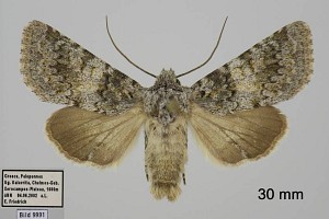 1: ssp. nevadensis (Draudt, 1934): Spanien, Granada, Monachil, Sierra Nevada, 2500 m, 10. Juli 1992, Lichtfang (leg., det. & fot.: Maurits De Vrieze)