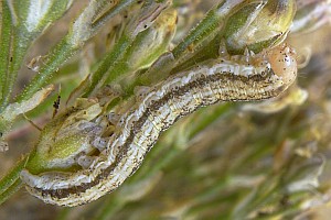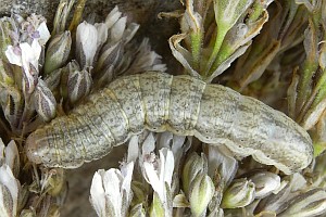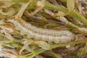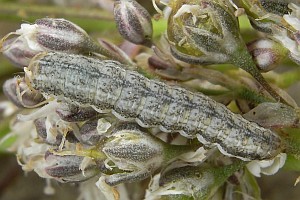 1-3: ein Exemplar, Deutschland, Thüringen, Kyffhäuser, Umgeb. Steinthaleben, Raupen an Blüten und Früchten von Gipskraut (Gypsophila fastigiata) 13. Juli bis 4. August 2013 (leg., cult., det. & Fotos am 13. August 2013: Heidrun Melzer)Forum