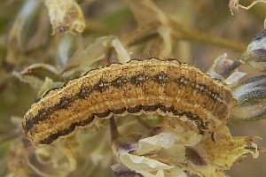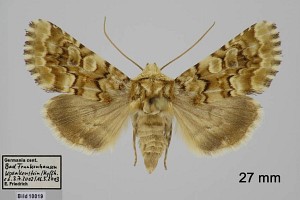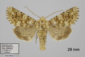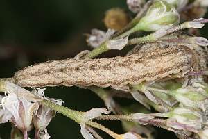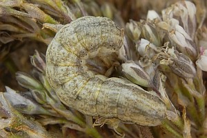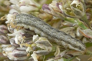 14-15: ♂, Deutschland, Thüringen, Kyffhäuser, Umgeb. Steinthaleben, Raupen an Blüten und Früchten von Gipskraut (Gypsophila fastigiata) 13. Juli bis 4. August 2013, e.l. 23. August 2013 (leg., cult., det. & Fotos: Heidrun Melzer) [Forum 11-15]