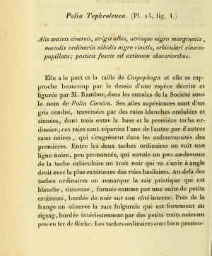 - Erstbeschreibung: Boisduval (1833): Description de quatre nouvelles espèces de Noctuélides. — Annales de la Société entomologique de France 2: 373-378, pl. XIV. Paris (Méquignon-Marvis).