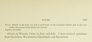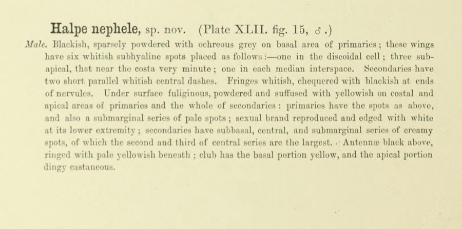 - Erstbeschreibung: Leech, J. H. (1893): Butterflies from China, Japan, and Corea. Part V: 557-642, pl. XXXVIII-XLIII. London (R. H. Porter). — Digitalisat auf biodiversitylibrary.org: [622], [pl. XLII fig. 15]