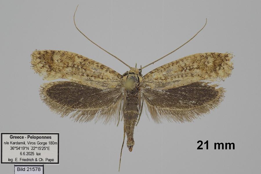 Huemer et al.(2025) meldeten morphologisch bestimmte Tiere aus Zypern: "1 male, 1 female: Cyprus, Kato Drys, 23.iv.2002. 1 male: Cyprus, Cape Greko, 23.iv.2002. 1 female: Cyprus, Larnaca district, Kato Drys, 430m, 34.842°N, 33.302°E, 25.v.2017, J. Junnilainen leg. 2 females: Cyprus, Paphos district, Kidasi (0.7km NE), 298m, 34.813095°N, 32.718885°E, 17.v.2018, I. Barton leg. & prep. Additional samples in coll. TLMF and CHNHM." Gleichzeitig bezweifelten sie die Artidentität wegen großem Barcoding-Abstand: BIN BOLD:AFN8455 statt BIN BOLD:AEI7400 mit einem Abstand von 4,81 %! Hier sind also noch weitere Untersuchungen auch mit Tieren aus anderen Regionen nötig.