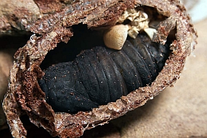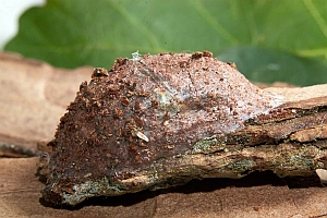1-2, Verpuppungskokon aus abgenagten Rindenstücken: Deutschland, Sachsen, Noitzscher Heide, Lindenhayn (bei Bad Düben), leg. Raupe 4. Juli 2007 (Studiofoto am 8. Juli 2007: Heidrun Melzer), cult. & det. Heidrun Melzer