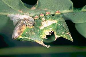 - Milhauser, J. A. (1763): Eine seltene grüne Raupe mit einem viereckigten Schilde auf dem leztern Gelenke, nebst ihrer Verwandlung in einen Nachtvogel. Beschrieben und auf einer Kupfertafel mit Farben abgebildet: 1-16, 1 pl.