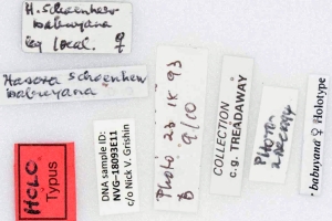 1-3: Holotypus ♀, Daten siehe Etiketten (fot.: Nick V. Grishin, Fotos bearbeitet: Michel Kettner), coll. Senckenberg Museum für Tierkunde, Frankfurt.