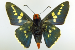 13-15: Holotypus ♂ von Pyrrhopyge josepha, Daten siehe Etiketten (fot.: Bernard Hermier, Fotos bearbeitet: Michel Kettner), coll. Zoologisches Museum der Humboldt-Universität zu Berlin.