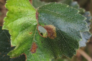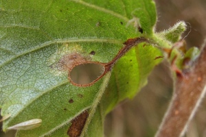 1-2: von Raupe hinterlassenes Befallsbild an Birke (Betula pendula): Deutschland, Nordrhein-Westfalen, Hagen, 100 m, trockene Brachfläche auf ehemaligem Bahngelände (Bahnschotter) mit einer Vielzahl aufwachsender Birken, 31. August 2014 (det. & Fotos: Josef Bücker)Forum