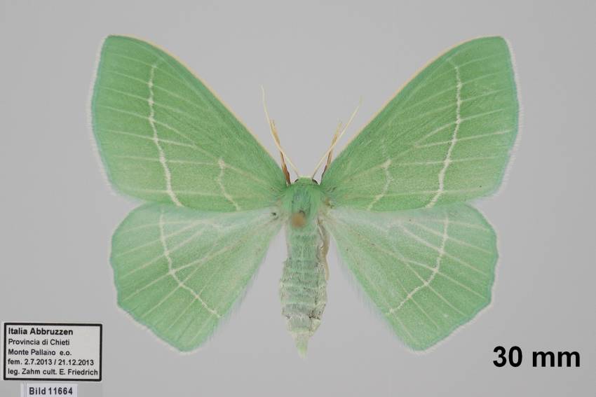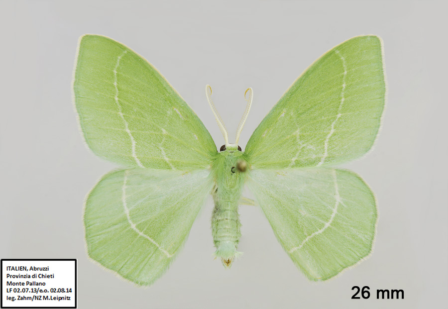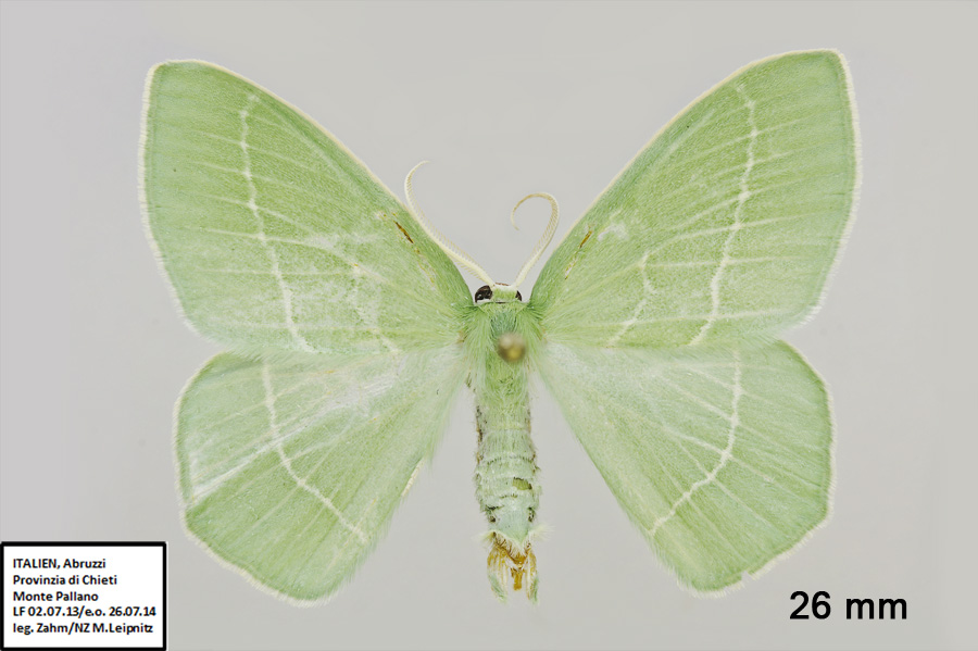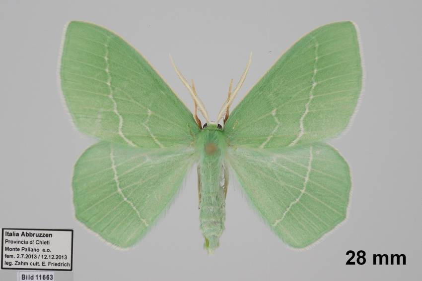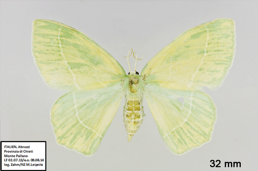 – siciliana subsp. nov. ist den am meisten gelbgrünen Formen von occidentalis sehr ähnlich und wird sich vielleicht als unhaltbar erweisen, wenn reichlicheres Material von verschiedenen Gegenden verglichen wird, aber nach der mir vorliegenden Serie (6 ♂♂, 2 ♀♀ von der Ragusa-Sammlung) ist der Vflgl-saum etwas weniger schräg, die Postmedianlinie fast damit parallel, manchmal (besonders bei den 2 ♀♀) fast auf die Postmediane im Hflgl treffend, wie bei zimmermanni, mit der sie auch dadurch eine oberflächliche Aehnlichkeit zeigt, daß bei dieser die fragliche Linie meist mehr gezackt ist als bei den meisten Formen der chrysoprasaria. Sizilien: Taormina, Ficuzza, Busambra usw.; auch in Süd-Italien.“