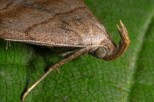 Bei ♂ ♂ ist das noch einfacher. Dann muss man sich nämlich nur die Fühler ansehen: Herminia tarsipennalis hat einen Knoten im Fühler, der Herminia tarsicrinalis fehlt.
