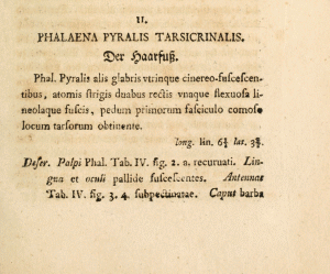 - Phalaena tarsicrinalis Knoch, 1782 [Originalkombination]