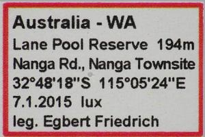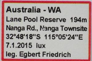 Tarmann (2004: 151): “Holotype ♂. Western Australia, Mt Dale, 21. 1. 1926 (W. B. Barnard), Genitalia slide Z 2792 (ANIC).” — Paratypes: 9 ♂♂ and 7 ɠ♀, all of them collected in Western Australia.