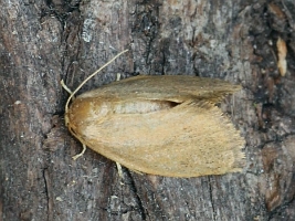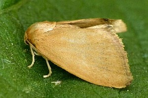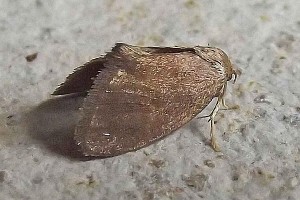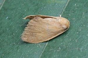Die Raupe wird in Mitteleuropa überwiegend an Rotbuchen und Hainbuchen gefunden, daneben an einer Vielzahl weiterer Laubgehölze, nicht aber an den von Apoda limacodes bevorzugten Stiel- und Traubeneichen. Da die Raupe - wie die jener Art - an der Unterseite der Blätter haften muss, sind es durchweg Blätter mit fehlender oder sehr geringer Blattunterseiten-Behaarung.