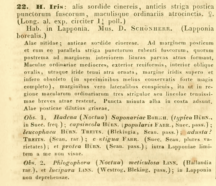 - Hadena iris Zetterstedt, 1839 [Originalkombination]