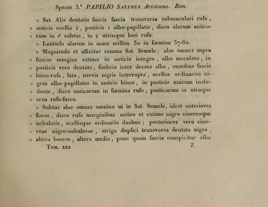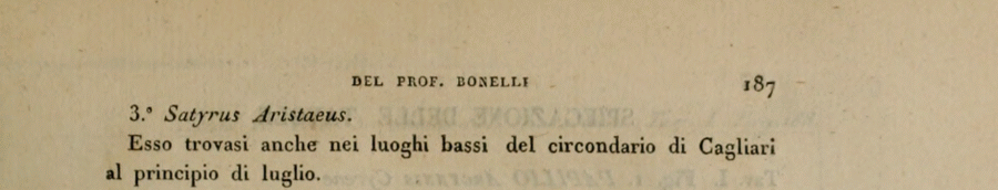 - Papilio (Satyrus) aristaeus Bonelli, 1826 [Originalkombination]