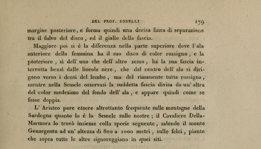 - Erstbeschreibung: Bonelli (1826): Descrizione di sei nuove specie d'insetti dell'ordine dei Lepidotteri diurni, raccolte in Sardegna dal Sig. Cav. Alberto Della-Marmora negli anni 1822 e 1823. — Memorie della Reale Accademia delle Scienze di Torino 30: 171-188, pl. I-III. Torino (Stamperia Reale).