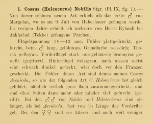 - Cossus (Holcocerus) nobilis Staudinger, 1884 [Originalkombination]