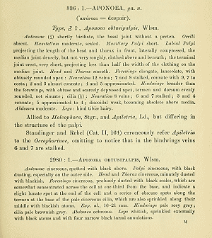 Adamski & Sattler (2019) berichten: "Aponoea obtusipalpis Walsingham, 1905: 125. Lectotype ♀, ALGERIA: Biskra, 7.iii.1903 (Walsingham, no. 96644). PRESENT DESIGNATION. (NHMUK, London)." Und weiter: "Mesophleps cinerellus Turati, 1930: 80, pl. 2, fig. [unnumbered]. Lectotype ♂, LIBYA: Cyrenaica, Banghâzi ('Bengasi'), 21.iii.1922 (Krüger). (NHMUK, London), designated by Li and Sattler 2012: 57. Synonymized with Aponoea obtusipalpis Walsingham, 1905, by Li and Sattler 2012: 57."