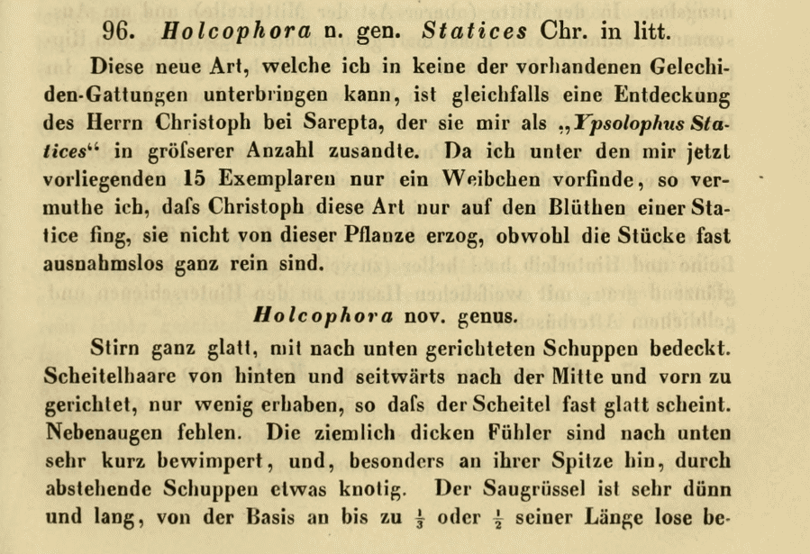 - Erstbeschreibung: Staudinger, O. (1871) ["1870"]: Beschreibung neuer Lepidopteren des europäischen Faunengebiets (Schluß). — Berliner Entomologische Zeitschrift 14: 273-330.