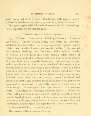 - Original description: Lucas, T. P. (1892): On twenty new species of Australian Lepidoptera. — The Proceedings of the Linnean Society of New South Wales. Second series 7 (2): 249-266.