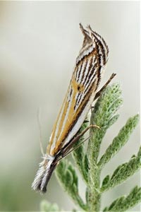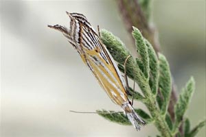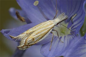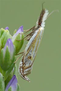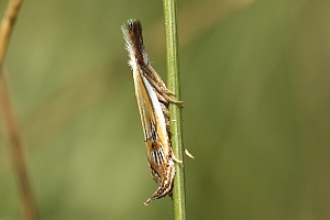 Weiter: "Nach Hannemann (1997) lebt die Raupe in Gespinsten unter Steinen und frisst Triebe und Blätter von Festuca ovina L. Die Falter leben gesellig (RAPP 1936). Nach meinen Beobachtungen sind die Tiere dämmerungsaktiv. Sie fliegen bei warmem Wetter nur kurze Strecken in und über der Vegetation. Da die Tiere relativ helle Flügel haben, können sie noch bis tief in der Dämmerung gut verfolgt werden. Am Leuchtturm wurde die Art nie angetroffen." Das ist ein wichtiger Hinweis, denn das heißt, dass Lichtfang keine Methode zum Artnachweis sein kann! Dies wurde auch von anderen Autoren so beschrieben - die Falter sind tag- bis dämmerungsaktiv!