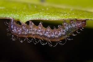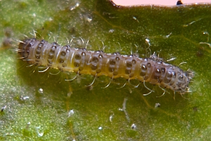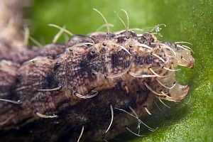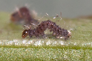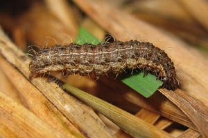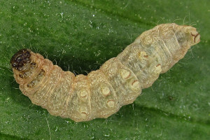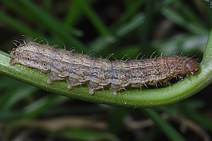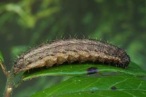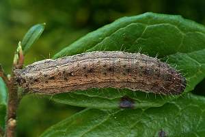 Die Raupe von Hoplodrina ambigua hat im Unterschied zur H. ocotogenaria Raupe eine Rückenzeichnung mit spitzwinkligen Winkeln. In der letzten Haut kommen bei H. ambigua noch kleine orange Seitenflecken oberhalb der Stigmen dazu [Stefan Ratering im Forum].