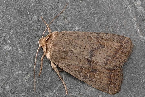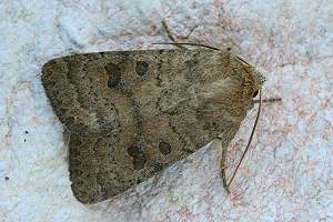 Vorderflügel von Hoplodrina octogenaria braun, im Vergleich zu H. blanda mit gelblichbrauner bis leicht rötlichbrauner Tendenz. Makeln oft dunkler als die Grundfarbe. Hinterflügel beim Männchen bräunlichgelb mit etwas hellerer Basis, beim Weibchen bräunlich. Im Gegensatz zu blanda kann octogenaria manchmal auch sehr kontrastreich gezeichnet sein (Querlinien, Mittelschatten und Wellenlinie dunkel auf hellerem Grund). [Axel Steiner].