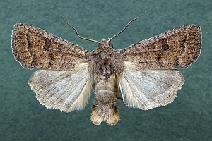 Hinweis: Ein bis zum 1. November 2021 hier gezeigter [Falter aus Tamins (Graubünden, Schweiz)] wurde nach [Bestimmungskorrektur] zu Hoplodrina alsinides verschoben.