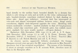 - Erstbeschreibung: Prout, L. B. (1913): New South African Geometridae. — Annals of the Transvaal Museum 3 (4): 194-225, pl. XII.