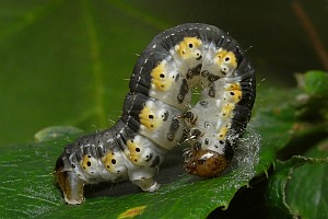 1: Jungraupe, Schweiz, Graubünden, Haldenstein, Ruine Lichtenstein, 770 m, ♀ am Licht am 4. Mai 2012, Eiablage 5. Mai 2012, Schlupf der Raupen 10. Mai 2012, Zucht an Berberis thunbergii (leg., cult., det. & Foto am 19. Mai 2012: Heiner Ziegler)Forum