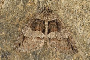 besitzt in den hellen Zeichnungselementen graugrüne Schuppen (Lupe). Die äußere Begrenzung des Mittelfeldes verläuft in Bögen am Mittelpunkt vorbei (b).